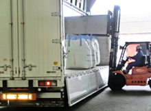 保管製品入出庫作業荷役機器による車輌への保管製品積み込み積みおろし作業