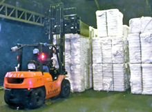ハイ付け作業荷役機器により製品を倉庫内に保管する作業